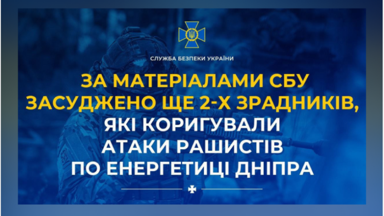За доказовою базою Служби безпеки України суд визнав винними двох агентів фсб, які коригували повітряні атаки рф по об’єктах енергетичної інфраструктури Дніпра. Кожному з них призначено 15 років позбавлення волі з конфіскацією майна. Більше новин на