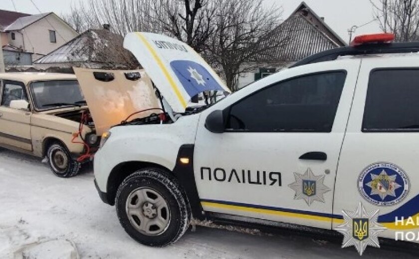 Під час патрулювання правоохоронці помітили на узбіччі дороги автомобіль, біля якого кілька людей намагалися завести транспортний засіб, штовхаючи його по слизькій ділянці. Як з’ясувалося, через сильний мороз у машині розрядився акумулятор, і водій опинився у скрутній ситуації.