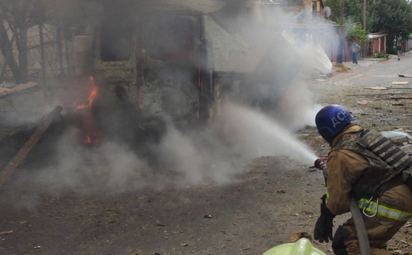 Сьогодні опівдні, 13 жовтня, до нікопольских рятувальників надійшло повідомлення про пожежу, що сталася внаслідок обстрілу. Під час ліквідації займання ворог наніс повторний удар по місту.