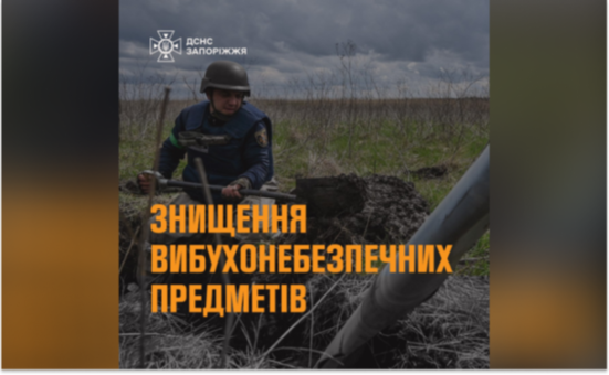 11 грудня піротехніки ДСНС знищили уламково-фугасний боєприпас, виявлений у одному з населених пунктів Запорізької області. Роботи проведені у встановленому порядку.